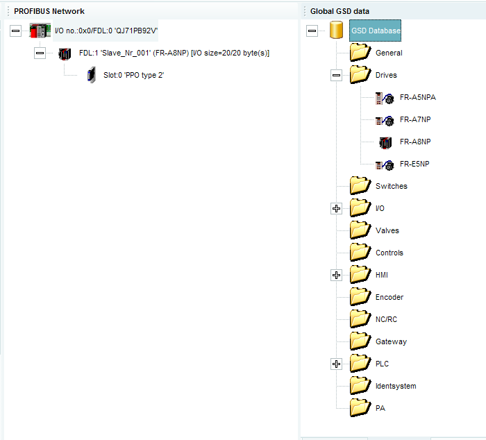 每個Profibus總線網(wǎng)絡(luò)模塊在組態(tài)時,都需要對應(yīng)的GSD文件。而一些新模塊的GSD文件在組態(tài)軟件GX configurator-DP中并沒有,需要人工在三菱官網(wǎng)上下載并添加進(jìn)去。之所以會出現(xiàn)找不到型號的問題,就是因為沒有在軟件中增添相應(yīng)GSD文件。FR-A7NP和FR-A8NP唯一使用區(qū)別就是安裝的GSD文件不一樣。而變頻器參數(shù),PLC程序,以及軟件組態(tài)都一樣。(具體使用方法可撥打我公司技術(shù)熱線0755-88352540咨詢。)
