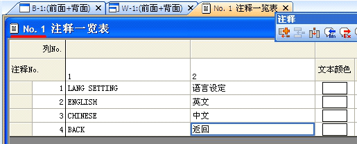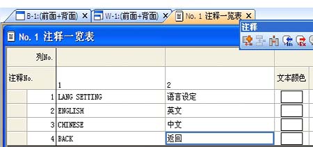 預覽列 NO:這里的預覽列為 1 時,是預覽英文注釋;為 2 時,是預覽中文注釋。注釋組 NO:因為一開始只建了一個注釋組,所以為 1。