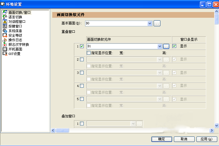 點(diǎn)擊軟件上的“公共設(shè)置”——“GOT環(huán)境設(shè)置”——“畫面切換窗口”如圖所示: